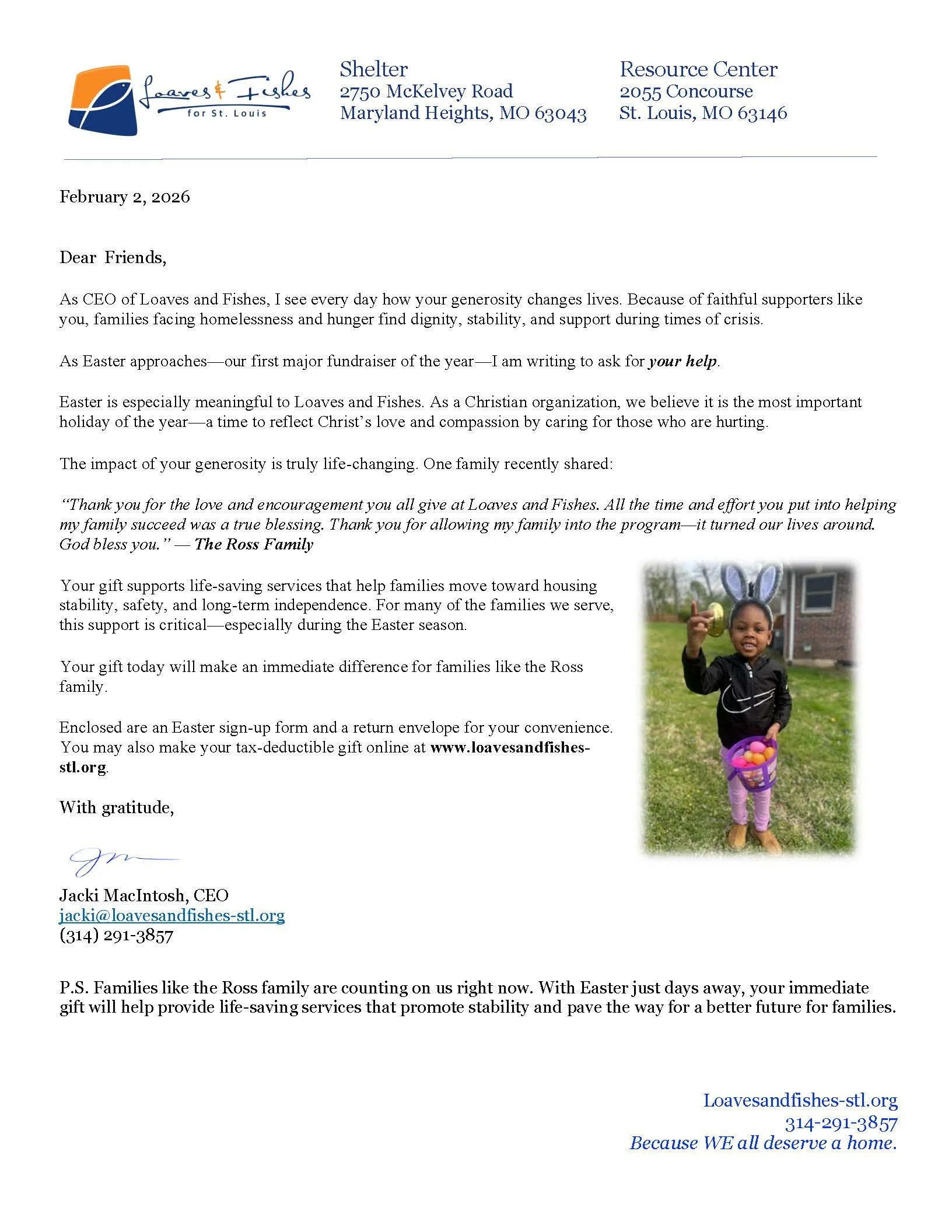 At Loaves and Fishes for St. Louis, every day is an opportunity to bring hope to families facing crisis. Last year, with the help of compassionate supporters like you, we provided emergency shelter to more than 600 families—60% of them children—and served nearly 600,000 meals through our food pantry. Of those meals, 87% nourished senior citizens struggling to make ends meet.